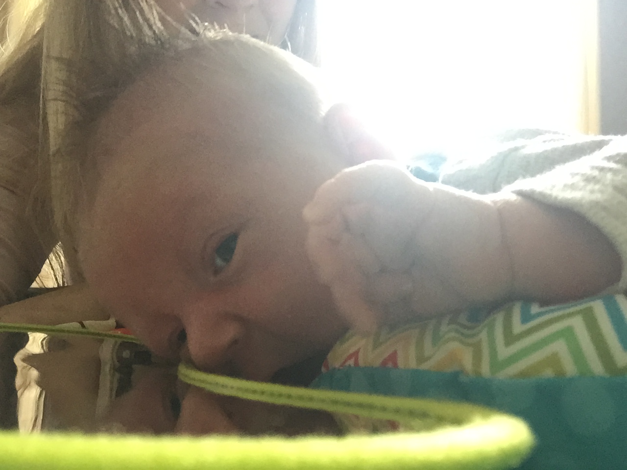 Leigh must weigh at least 10 pounds now. We go to the doctor for a check up next week and we’ll find out how much he’s grown then. He was 9 lbs 9 oz at his appointment two weeks ago. He’s been eating like it’s an Olympic sport, so I assume he’s gained some weight. He also likes to be held and my sore arms confirm my assumptions.