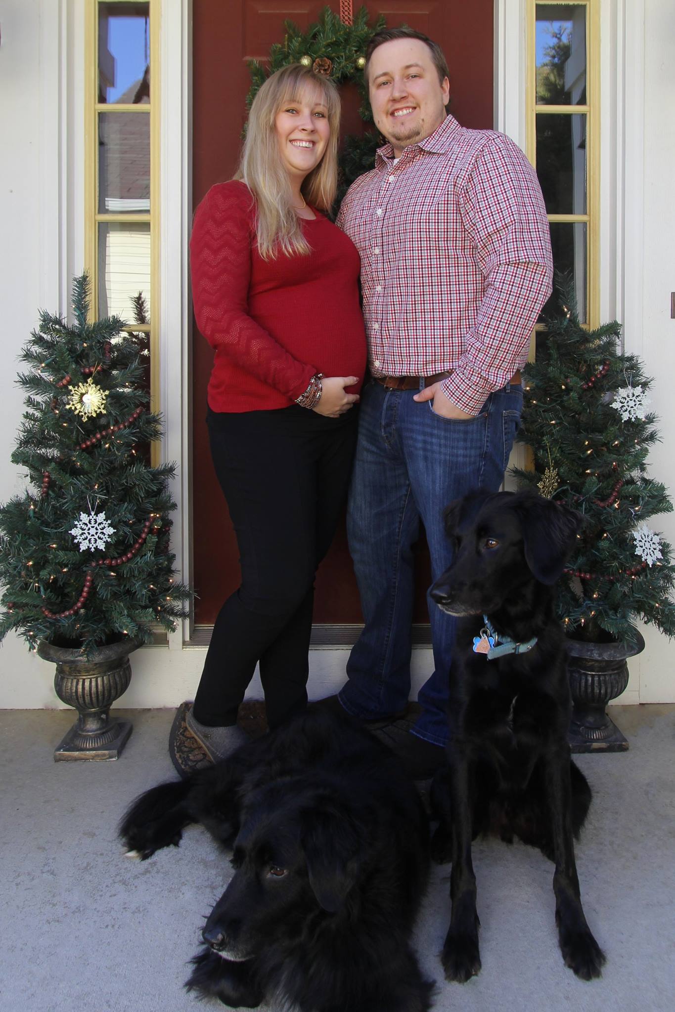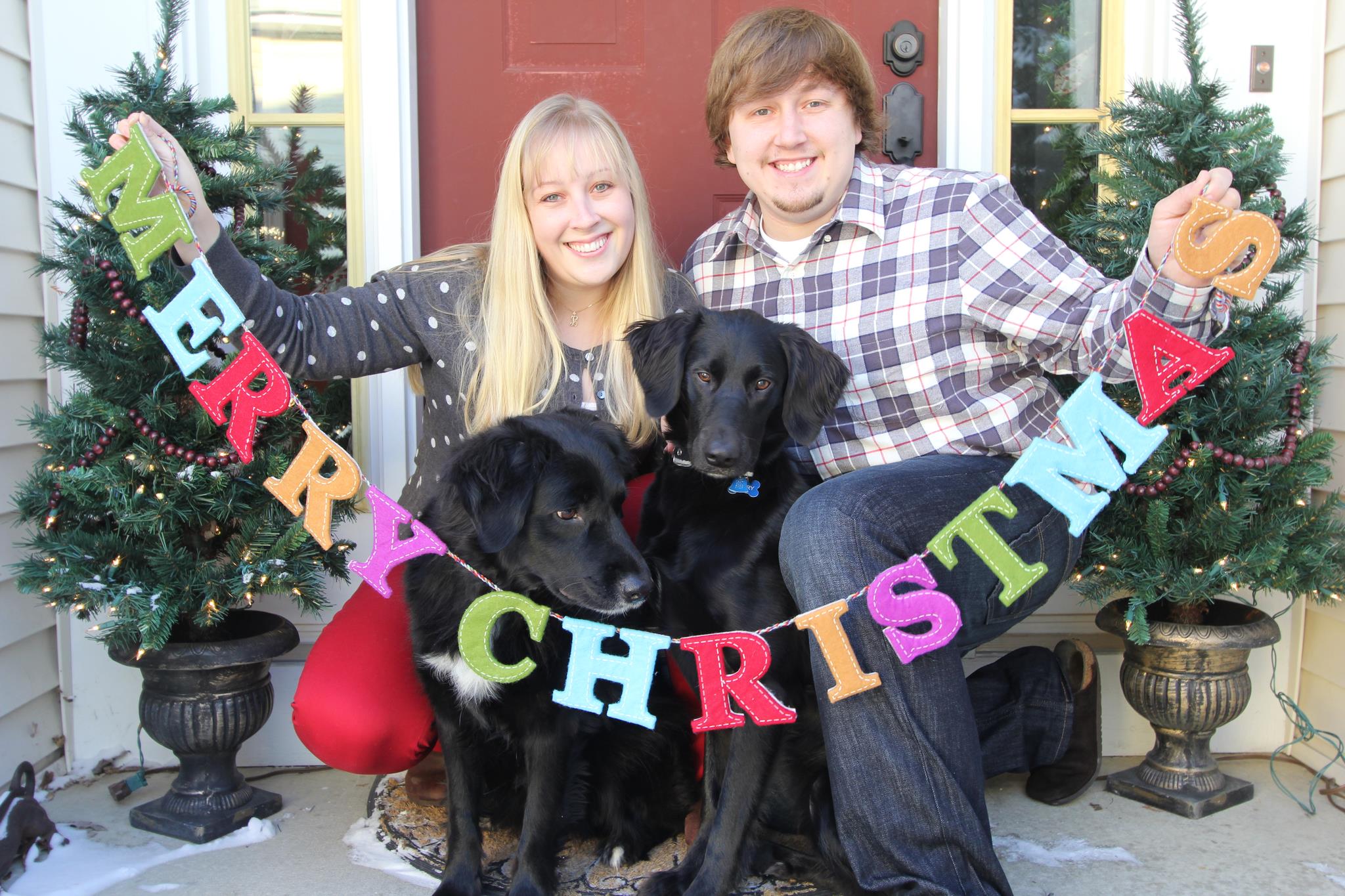 We take these cheesy family photos outside our front door with our dogs every year. We changed it up this year because it was just too much trying to take a photo where both a baby and two dogs were looking at the camera.