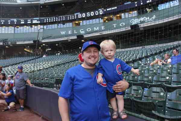 We took Leigh to his (and our) first baseball game at Miller Park in Milwaukee on Sunday, July 30, risky business in the middle of summer, but we got lucky and scored good weather — not too hot. Cubs beat the Brewers 4 to 2 so we stuck around to celebrate!