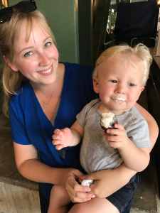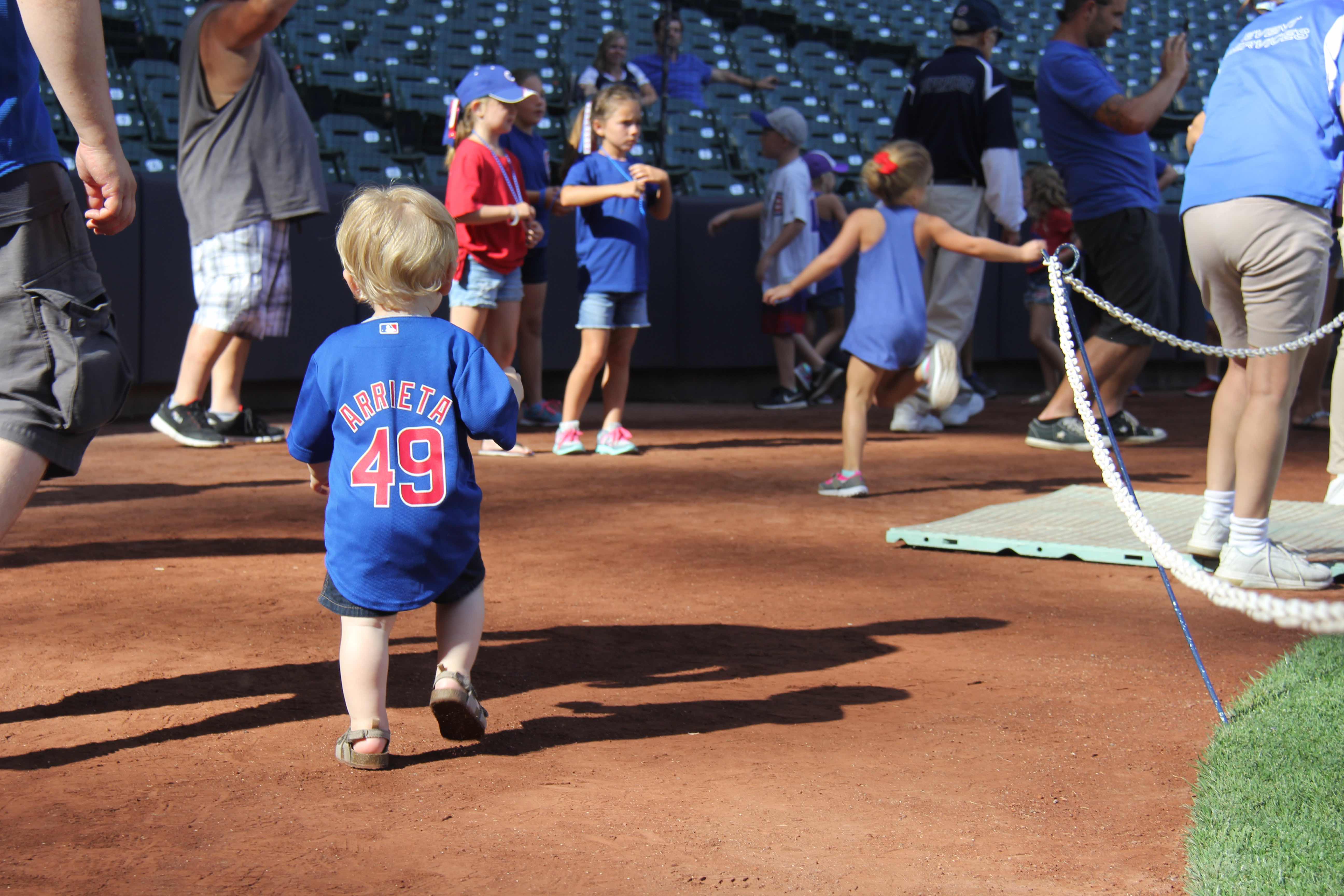 The coolest part about attending this game was running the bases after it was over. Kids get to run the bases every Sunday. We waited in a hella long line to do this, but it was worth the few minutes we got to stand on the field and feel the dirt under our shoes. Kids got to run from first around to third base, but since Leigh is too young to run on his own (in any given direction), he just walked from first around home to third base – the walk all the parents made to meet back up with their kids. I appreciated how Miller Park let the parents on the field so they could take photos and video of their kids running around like the players do. Everyone was exhausted after watching the game and waiting in line, but everyone had the biggest smile on their face after stepping off the field.