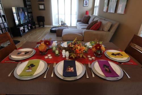 I’m also the type of person who loves decorating the dinner table with flowers, candles and place cards. One year, I printed out photo of everyone’s face and adhered a pilgrim hat to their heads. Another year, I cut out letters from magazines to spell their names. As an afterthought, this seemed a little bit like something a crazy person would do to write an anonymous ransom note, but I thought it was the coolest idea at the time.