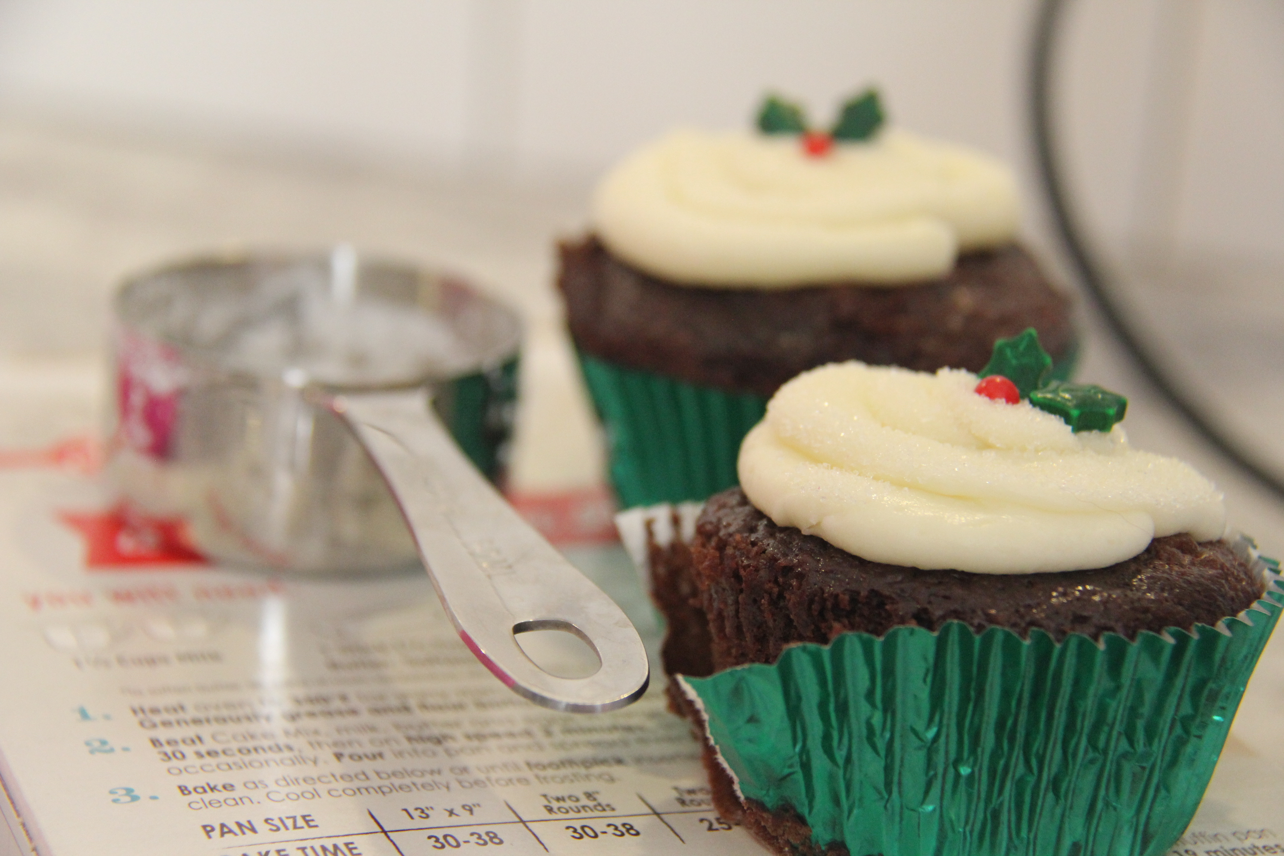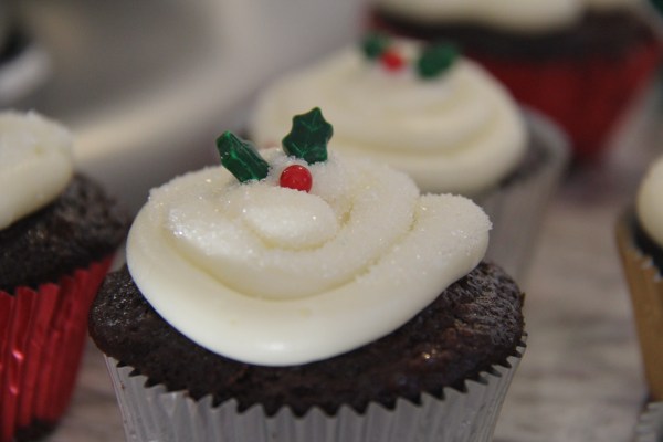 There’s nothing special about these cupcakes, except that I made them. I love baking and decorating cupcakes, but it’s really hard to find time for this hobby (and it’s not super good for my waistline). We had a family party this weekend, so I took advantage of the opportunity to break out the mixer and whip up a batch of these delicious chocolate cupcakes with buttercream frosting and the cutest little holly berry sprinkles.