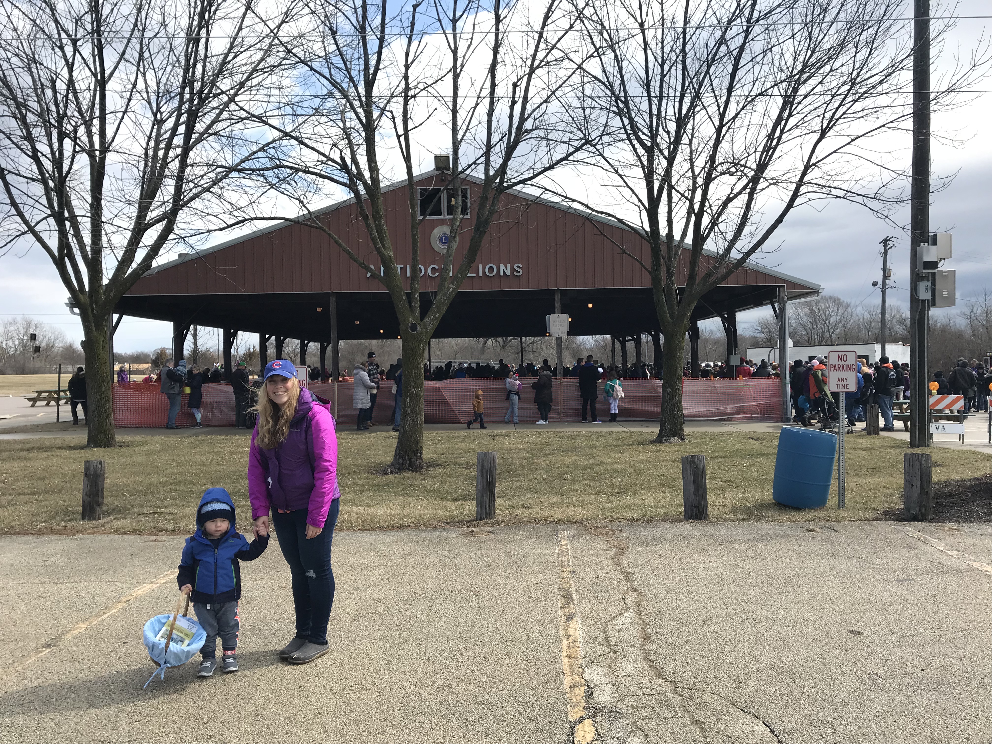 On a freezing cold Saturday, hundreds of parents crowded around an outdoor pavilion, grasping at the hands of their children dressed in winter coats, begging them to keep their hats and gloves on. The “egg hunt” was set up in a quarantined area, established by yellow caution tape. Bales of hay were spread out and hundreds of plastic eggs were tossed in the pile.