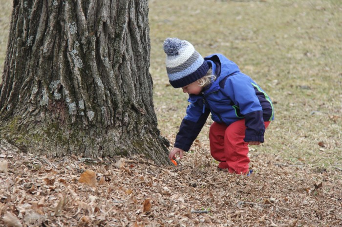 This was the first year when I felt my son might be interested in participating in our local Easter egg hunt. Leigh is only two. But he’s also sharp as a tack. He loves when we practice finding eggs I’ve hidden around the house. He gets excited and squeals every time he discovers one. I thought this whole egg hunt thing was in the bag. WRONG.