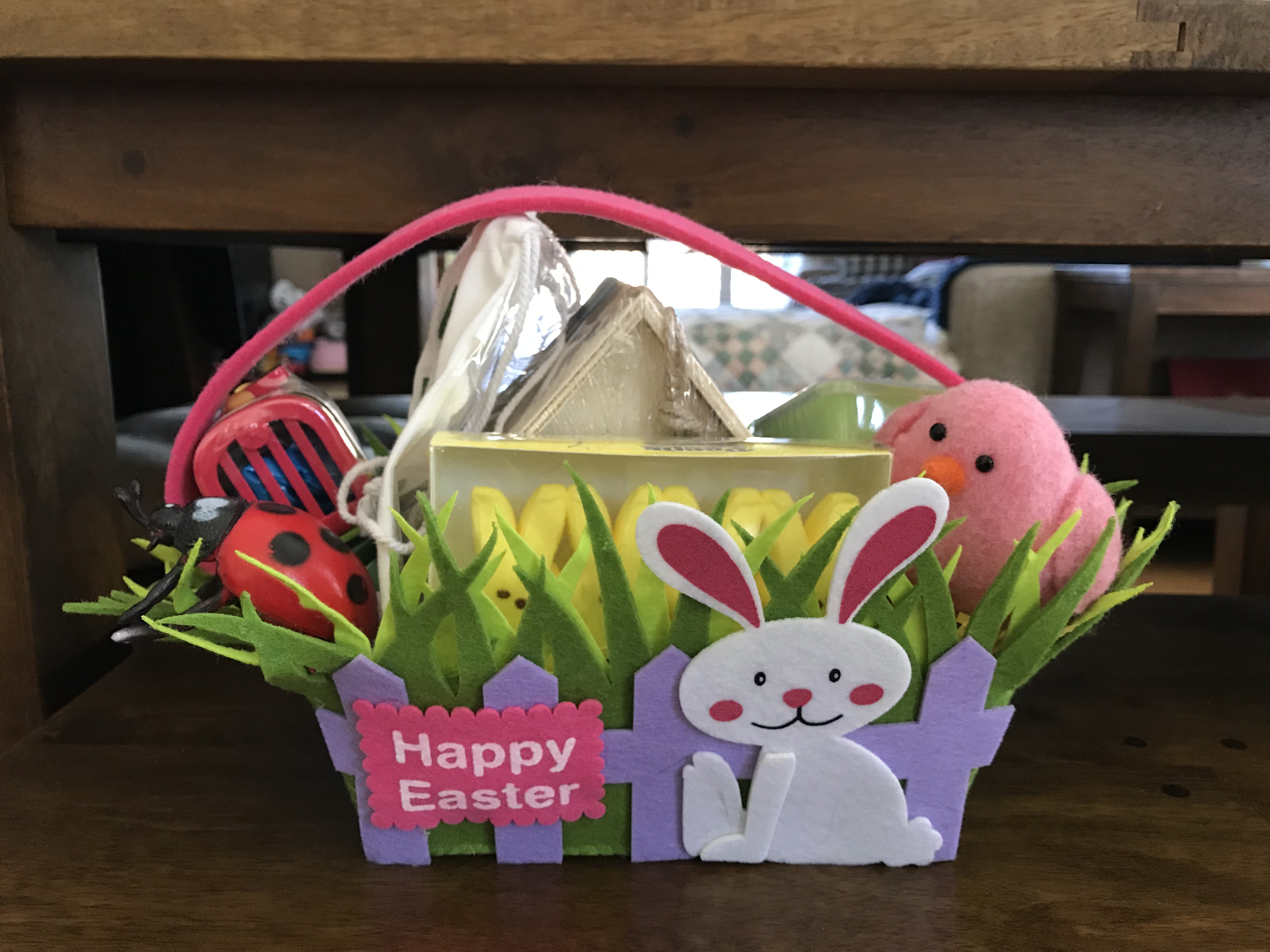 I leave you with one last tip: don’t stuff all your kids’ eggs with chocolate. Initially, I filled a dozen eggs with M&Ms and Hershey Kisses. The night before Easter, I had a premonition of Leigh opening up each egg and chugging its insides one-by-one so I quickly switched out many of the chocolate candies for Goldfish crackers before hiding them. Leigh was rather disappointed to find that some eggs had chocolate and others just had cheesy crackers. Guess the Easter bunny will have to fill the eggs with something else next year. His basket was full of more fun than sweets. Target’s dollar section is the best for Easter basket stuffers! Garden rocks, birdhouses, bugs and birds are all great options for the big bunny to present on Sunday morning.