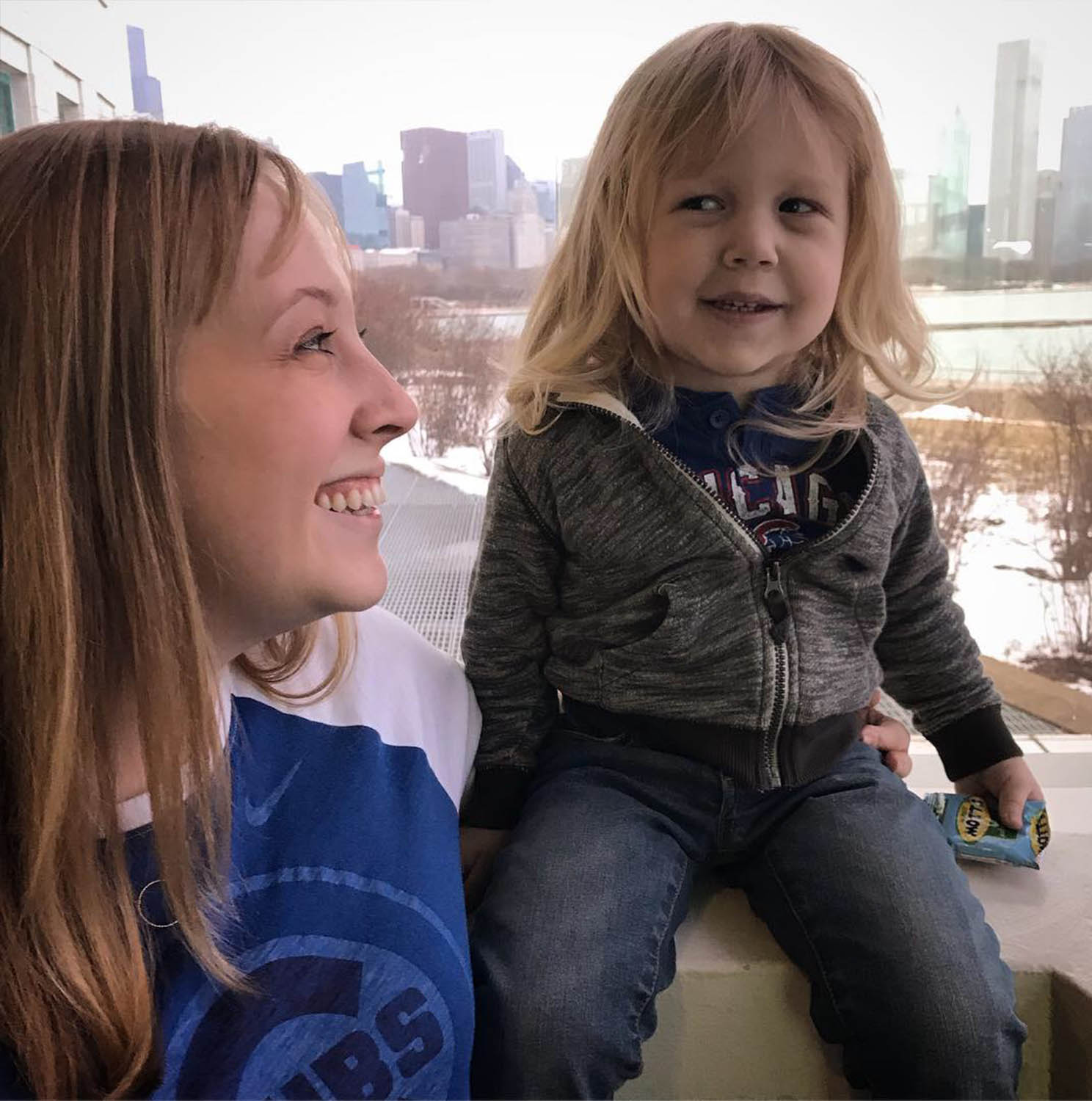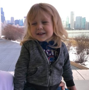 While in Chicago this month, a very nice homeless man sat down next to us and started drawing Leigh. We watched his crayon sketch a round head with long hair and sweet lips. The entire time I’m thinking this man is drawing a girl. This was confirmed when his final detail was a dress and then he asked, “What’s her name?” My husband and I made eye contact and kindly said, “His name is Leigh.” The artist quickly apologized and we had a nice chat about how that’s part of the beauty of children his age. You never really know if a child is a boy or girl. They have this charming innocence about them that makes gender irrelevant. I wish that stuck around throughout life. I detest the gender bias I face on a daily basis and having a son with long hair is a funny way of fighting all the things expected of boys and girls.