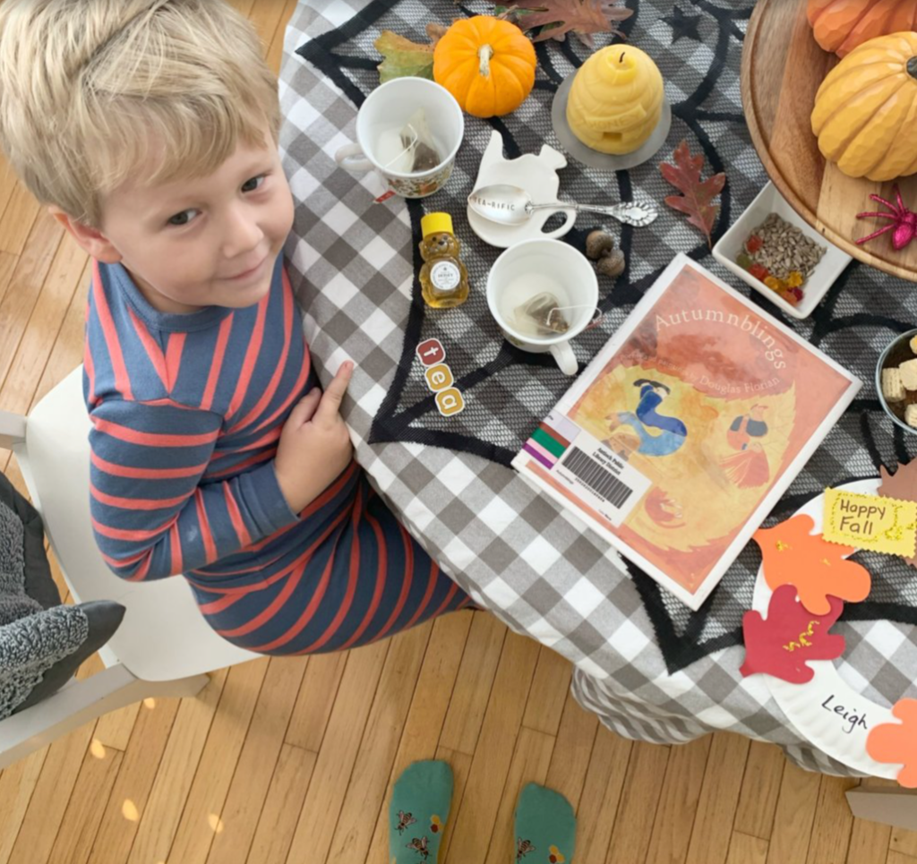 Ours is a bit simpler with a plate of cookies from our favorite local bakery, cups of tea, a simple candle and a childhood classic book of poetry. Shel Silverstein’s Falling Up and Where the Sidewalk Ends are perfect to start with. We’ve expanded to seasonal collections of poems since it’s included in the book list of the Exploring Nature with Children homeschool curriculum we’re following.