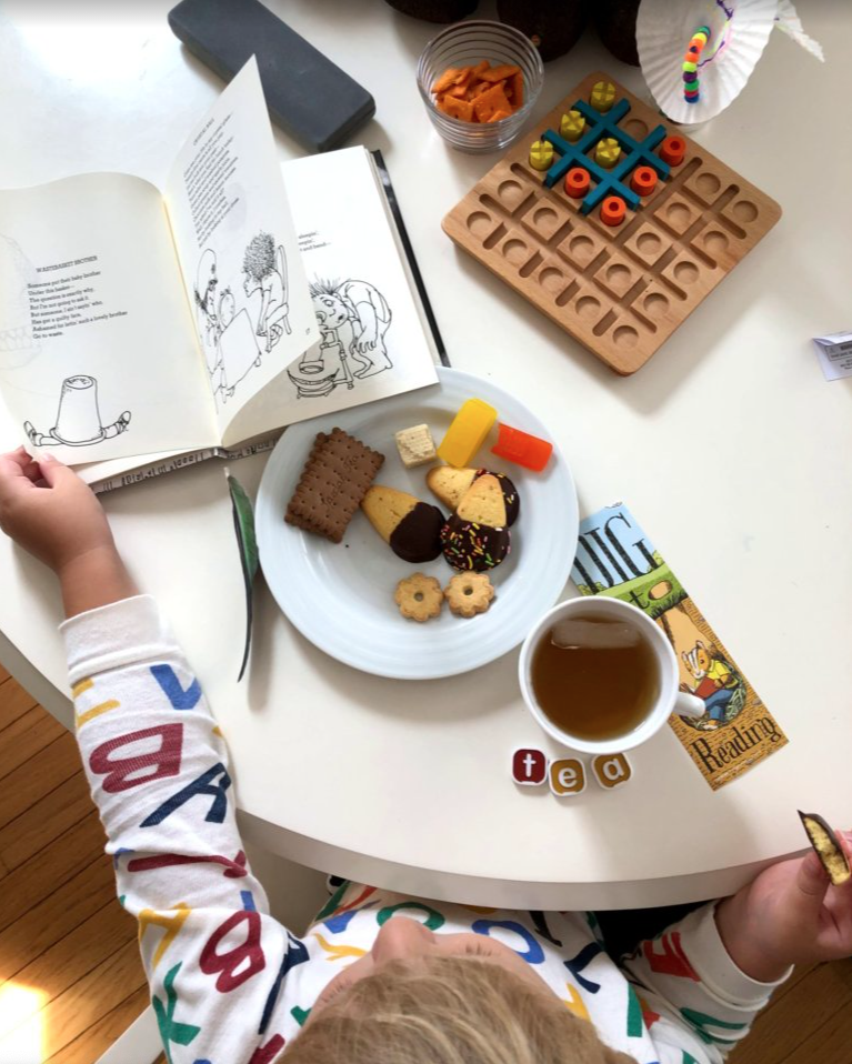 Warming up a pot of hot water, picking cookies and steeping tea bags takes only a moment. But my son has my undivided attention during the whole routine. Even better, he helps pick his tea bag, squeezing out honey and stirring our cups. We enjoy 3-4 poems, talking about the silly and sometimes serious meanings behind them. And then the moment is over and both of us are full of love and sweets to help us get through the rest of our morning.