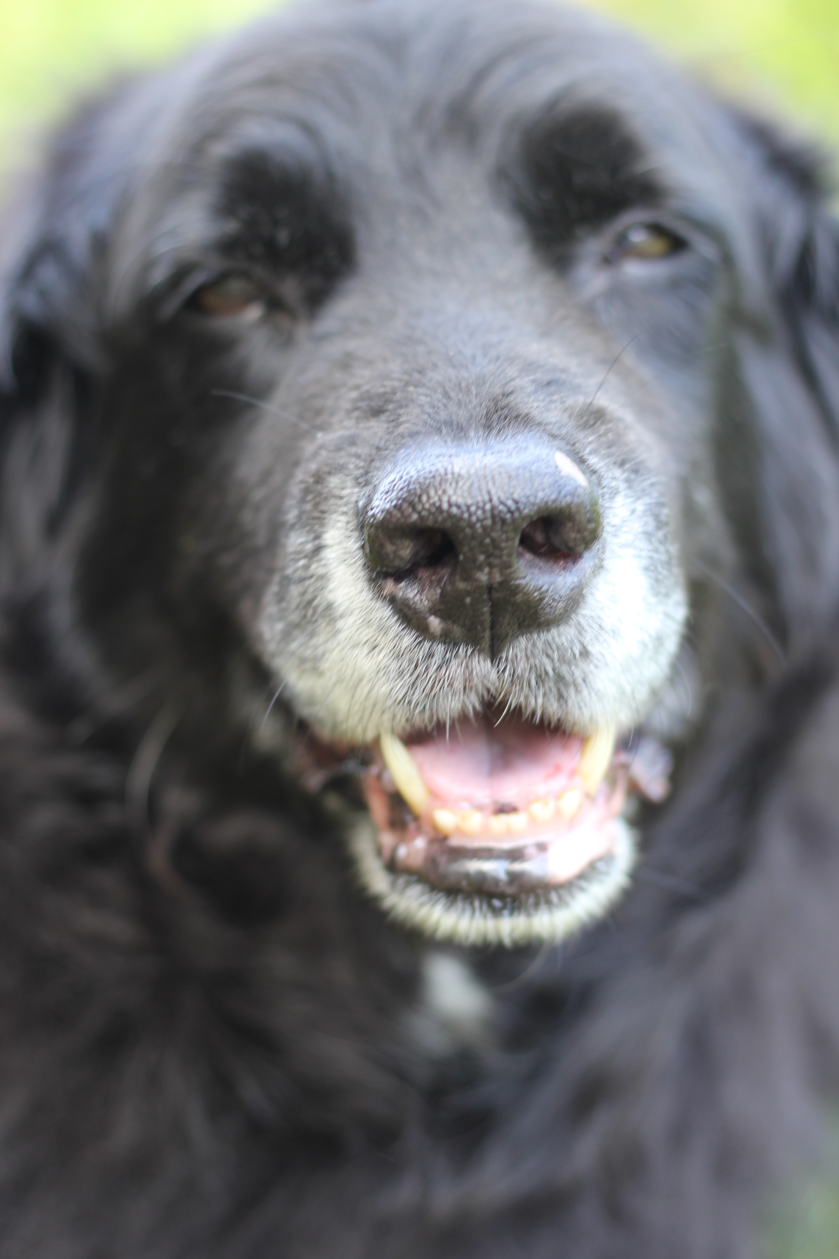 Cloe lived to be at least 14-years-old and I am proud to say she died with all of her teeth. She was a black mixed breed, somewhere between a fluffy chow and a friendly flat-coated retriever. She had a healthy coat up until the last two weeks of her life when she stopped eating. Her tail was this perfect curl of long black kinky hair. Her mild temperament was one of her best qualities. Cloe was the opposite of aggressive. She was a timid dog who had to learn to walk without us tripping over her. She didn’t know how to go up and down the stairs to our second-floor apartment, so we carried her for months.