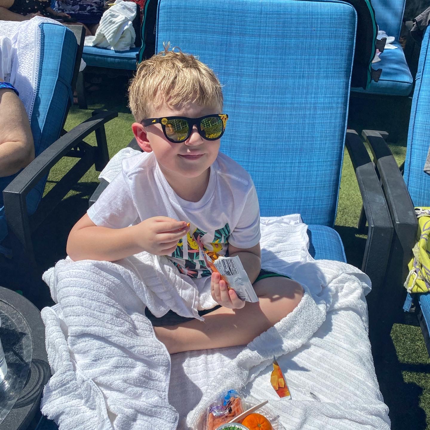 Poolside service kept cold drinks in our hands and “power packs” of kid-friendly food. I don’t know what it is, but sipping a fruity cocktail in the sun makes me feel like I’m on vacation, even if they cost nearly $20 a drink. It’s a price I’m willing to pay for a carefree moment.