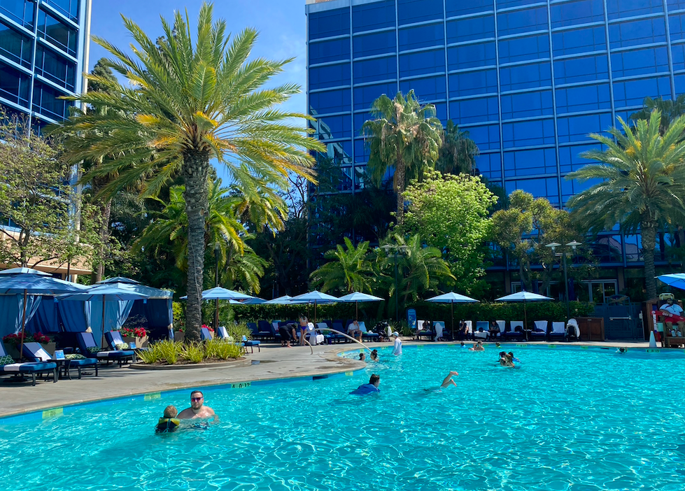 TIPS: The hotel pools had really nice complimentary life jackets on a first-come, first-served basis. Since we chose to visit the pools on the weekends, when most guests were enjoying the park, there were plenty available. This would have been good to know before we packed Leigh’s life jacket in our suitcase! We also found plenty of poolside lounge chairs with umbrellas. Lifeguards took their jobs very seriously and there was plenty to be found surveying every area. We felt super safe with Leigh at the pool. Our biggest concern was remembering to reapply sunscreen every few hours.