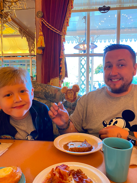 Our first experience was at Goofy’s Kitchen. It was a little like throwing Leigh into the deep end of the pool of singing and dancing life-sized characters. It took a bit of time for him to get used to the loud music and frequent dancing throughout the restaurant as guests waved their napkins around above their heads. Leigh ate more sweets here than anywhere else. The food was good, but you clearly are not paying for the breakfast buffet. It’s all about seeing Goofy and his pals.