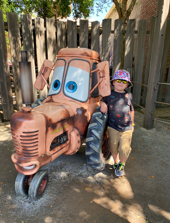 Leigh rode Jessie’s Critter Carousel more than once, picking a different critter to ride each time. Jumpin’ Jellyfish was just his pace. Inside Out is one of our favorite movies so the Emotional Whirlwind was fun to experience. But if you asked Leigh what was his favorite ride, he would tell you Mater’s Junkyard Jamboree. I couldn’t help but laugh every time the music played while whipping us around on little tractor tow trucks. Luigi’s Rollickin’ Roadsters is also a really fun dancing car ride to do at night under the lights. The Italian music had us repeating lines from the Disney movie Luca to each other, laughing nonstop. “Whatsa wrong wit you!?”