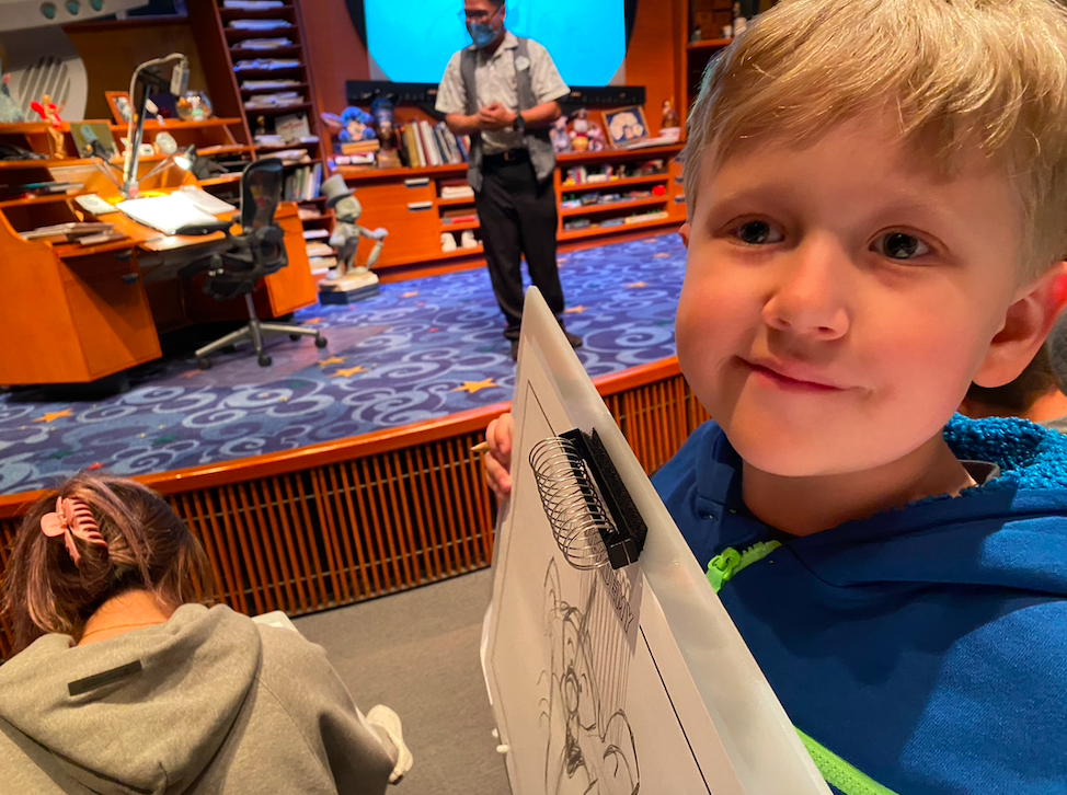 Looking for a low-key activity for Leigh, we discovered the Disney Animation Building and listened to Turtle Talk with Crush and sat for several drawing classes with the Animation Academy. Leigh loved learning how to sketch Disney characters like Olaf, Lightning McQueen, Scully and Tigger with their professional artists. He would stay there all day if he could. It’s a great rainy day activity.