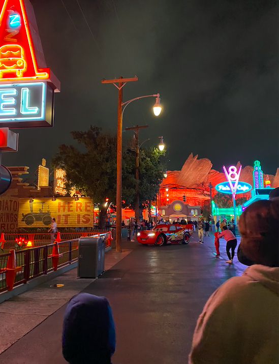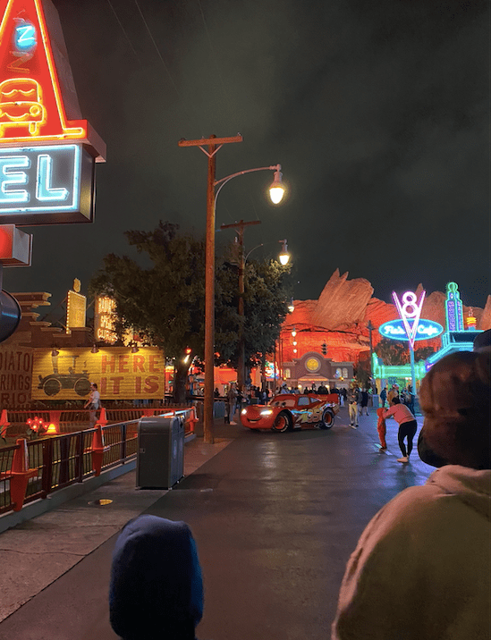 The coolest part was Cars Land, a complete recreation of Radiator Springs from the Pixar film. On the last night, we caught the sunset tradition of turning on all the neon lights and dancing in the street to The Chords song, “Life could be a dream, Life could be a dream, Do-roo-do-do, sh-boom.” Leigh even met Lightning McQueen in person! He drove right down the street and parked at the Cozy Cone Motel.