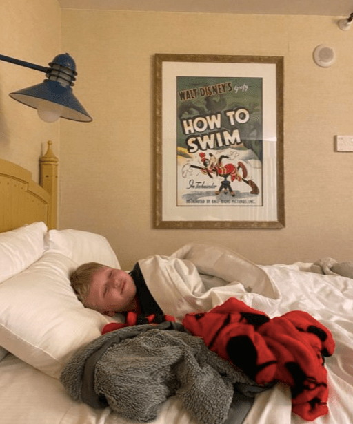 The pool at our hotel was closed for renovations, so we were granted access to the other hotel pools — fondly called “pool-hopping” and they were lots of fun. We were shuttled on an exciting golf cart ride to and from the pool by some of the most delightful cast members. Even though it was cooler out, Leigh had a blast in the heated pools. There were waterslides with short lines, shallow spots to hang and water no deeper than four feet. We spent three days poolside on our trip and Leigh said these were his favorite moments. Goes to show he doesn’t need a lot to make him happy. It only helped that the artwork in our hotel room featured a “How to Swim” Goofy movie poster he loved.