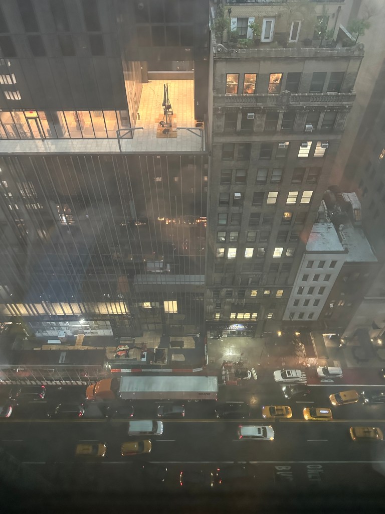 Speaking of the hotel, Le Meridian was located in a great spot, central to everywhere we wanted to be. A skinny little strip of 57th Street juts up 29 floors with a glimpse of Central Park, despite a new building being built that blocks most of the view. The rooms are small, but that’s what you expect in New York. Typically, you don’t spend too much time in a hotel room on a trip to the city. But our flight was canceled due to weather, so we ended up spending an extra night in our room, watching TV and eating takeout in bed. It rained heavily and fast that night, flooding the sidewalks, streets and subway. The videos that surfaced are scary!