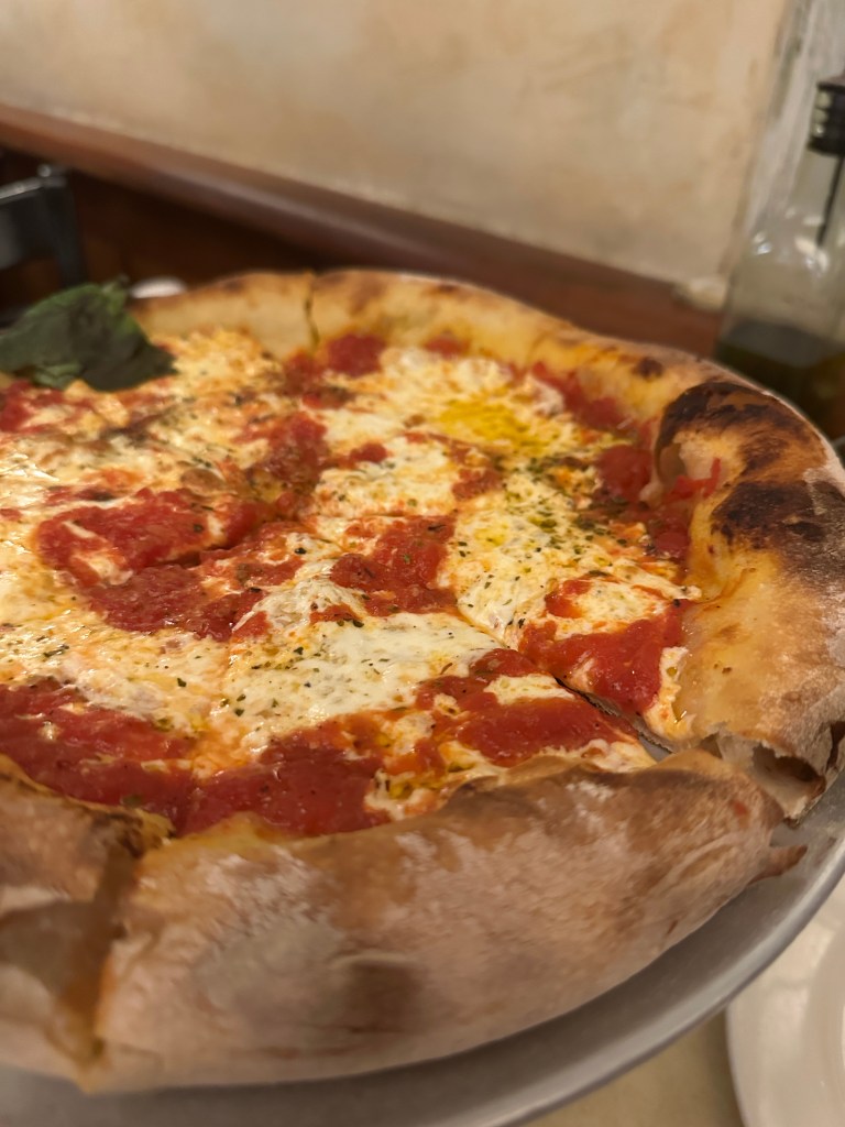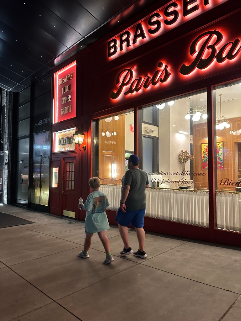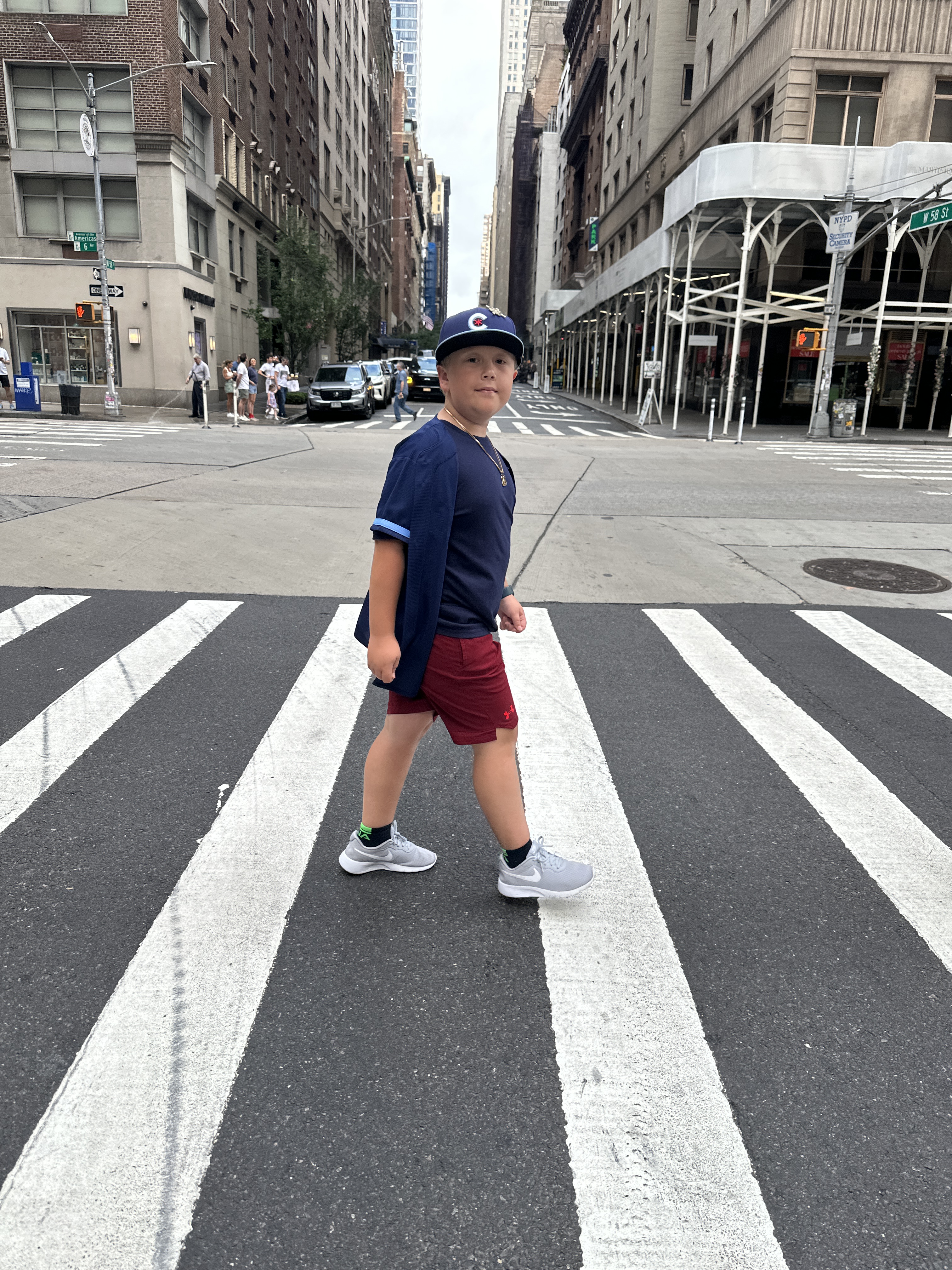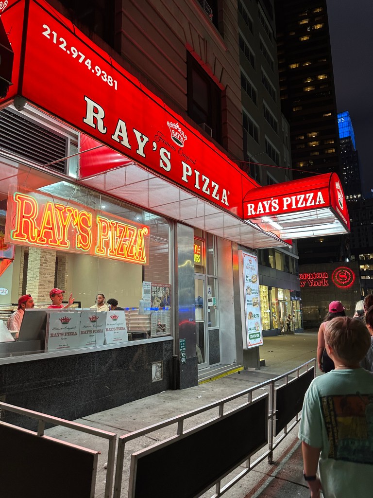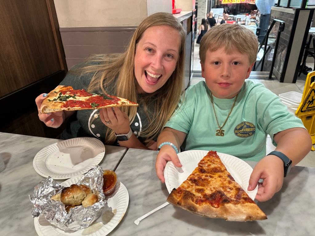 Sometimes I forget we’re traveling with a 9-year-old who wants to wear a baseball cap with every outfit, which isn’t particularly fitting for a fancy cocktail hour or brunch at an NYC restaurant. Breakfast is always an easy meal to eat with a kiddo because who doesn’t love pancakes, waffles and bacon? We sort of fit in at Sarabeth’s for Sunday brunch, where a few families were also dining with children. I loved their delicious mushroom omelette served with a savory popover. But we had to get up from our table at Le Jardin, the rooftop bar at our hotel. We made our way up to the top floor for our reservation, but quickly made our way out the door after seeing only ostentatious adults dressed to the nines for a night out. And that’s okay. Eric and I will enjoy plenty of trips in the future when we can dine wherever we want. This just wasn’t one of them. Back to good ol’ Rays Pizza!