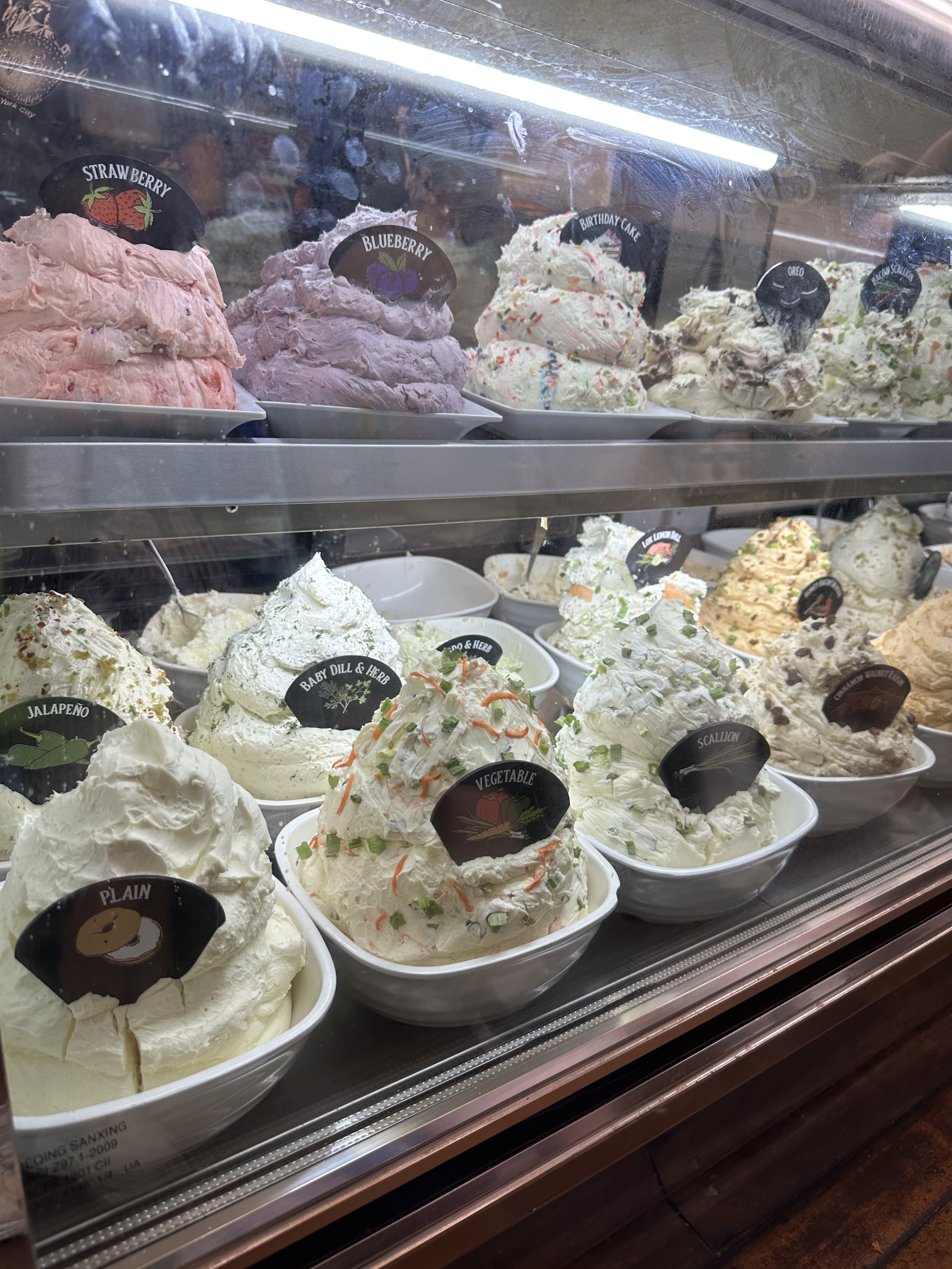 Before jumping on the subway to Yankee Stadium, we enjoyed breakfast from Liberty Bagel. With a line out the door and down the street, you knew these bagels were going to be good. They have super fun rainbow and patriotic bagels, plus more than two dozen flavors of cream cheese schmear piled higher than humanly possible in the deli case, teasing your tastebuds as you decide which combo you want. I went with a plain bagel and baby dill + herb schmear – adult choices. Leigh went wild with a rainbow bagel and Oreo schmear. I’m not sure if that counts as breakfast, but we were on vacation, so I wasn’t going to shame his schmear.