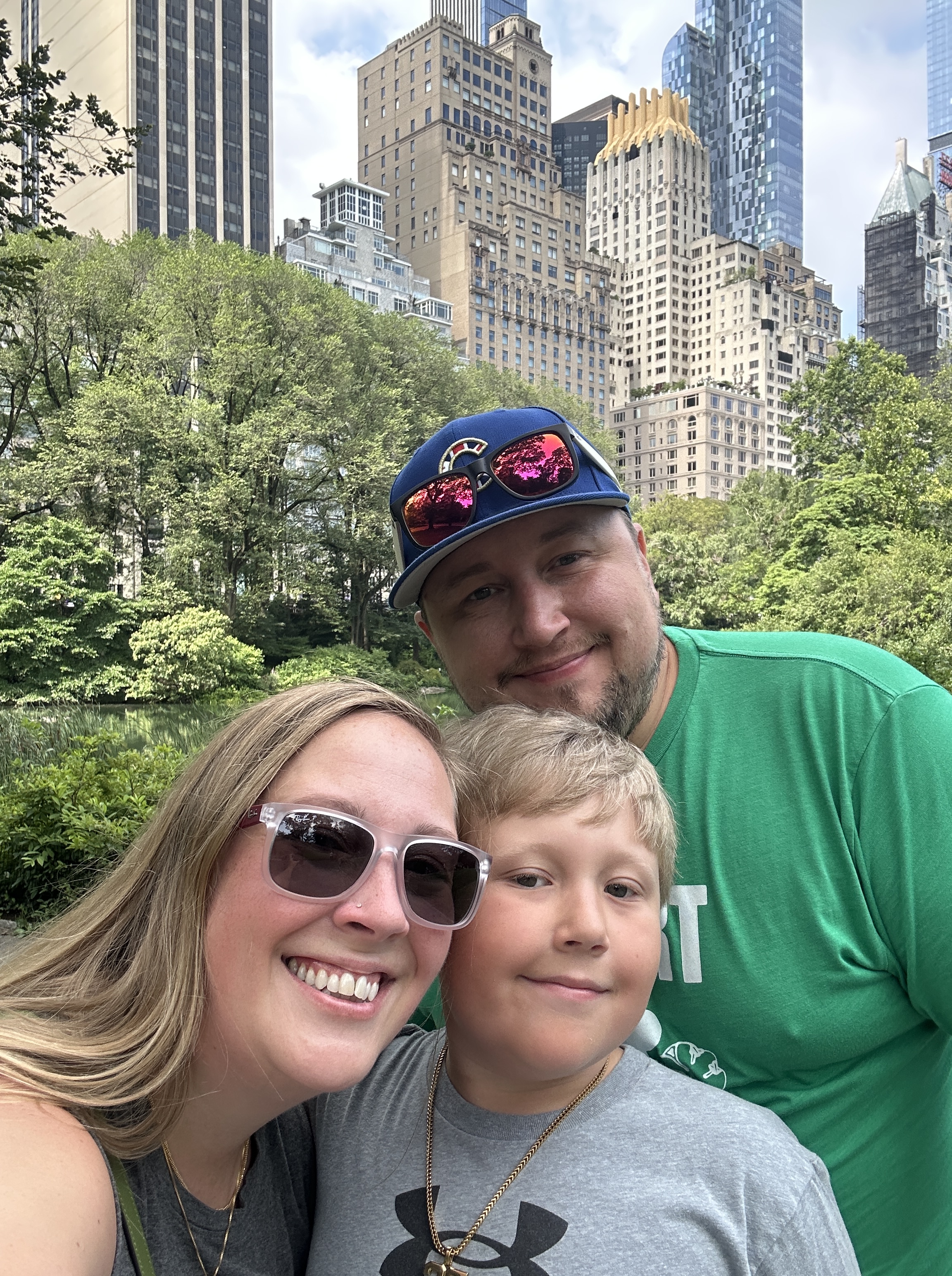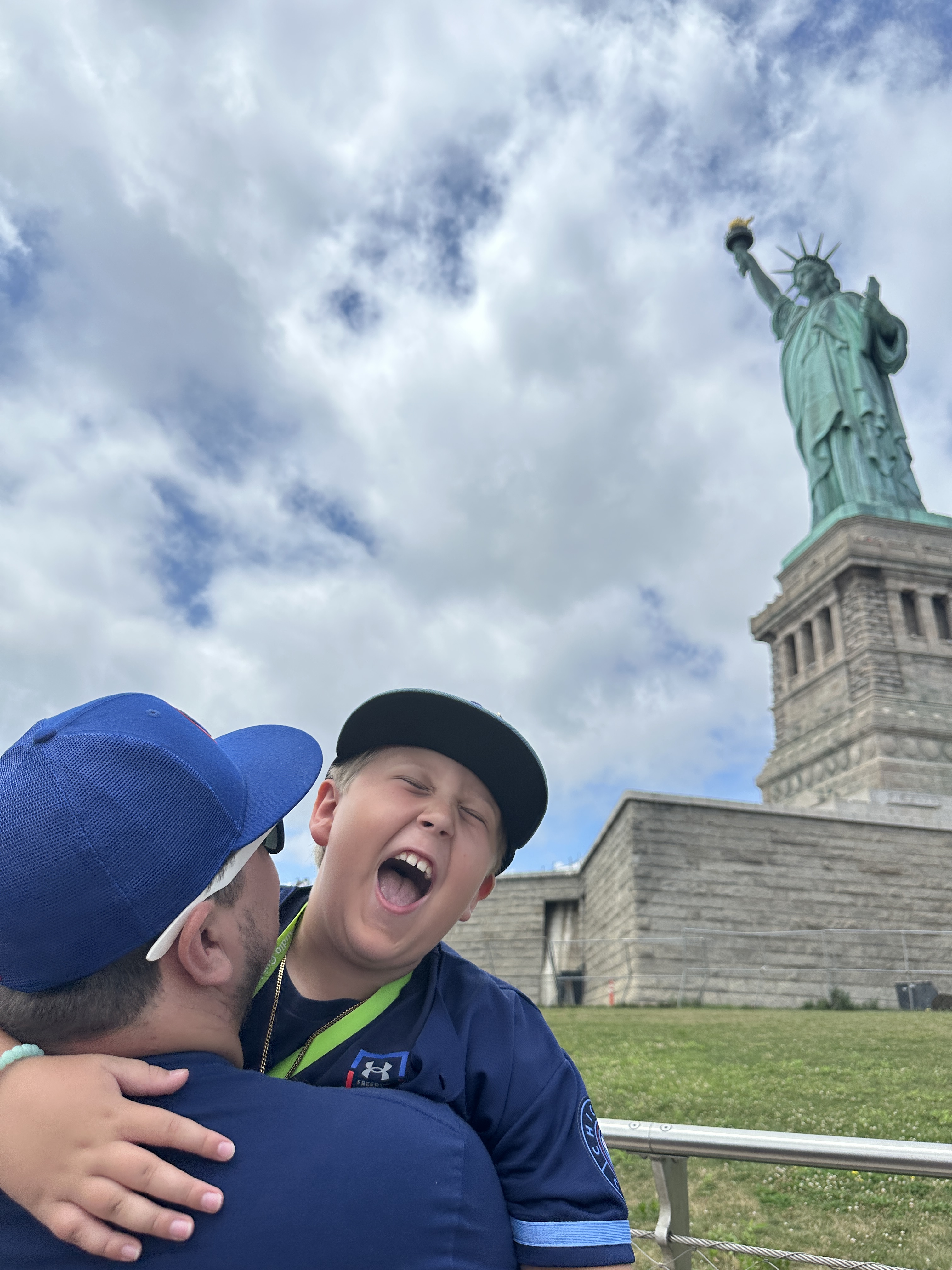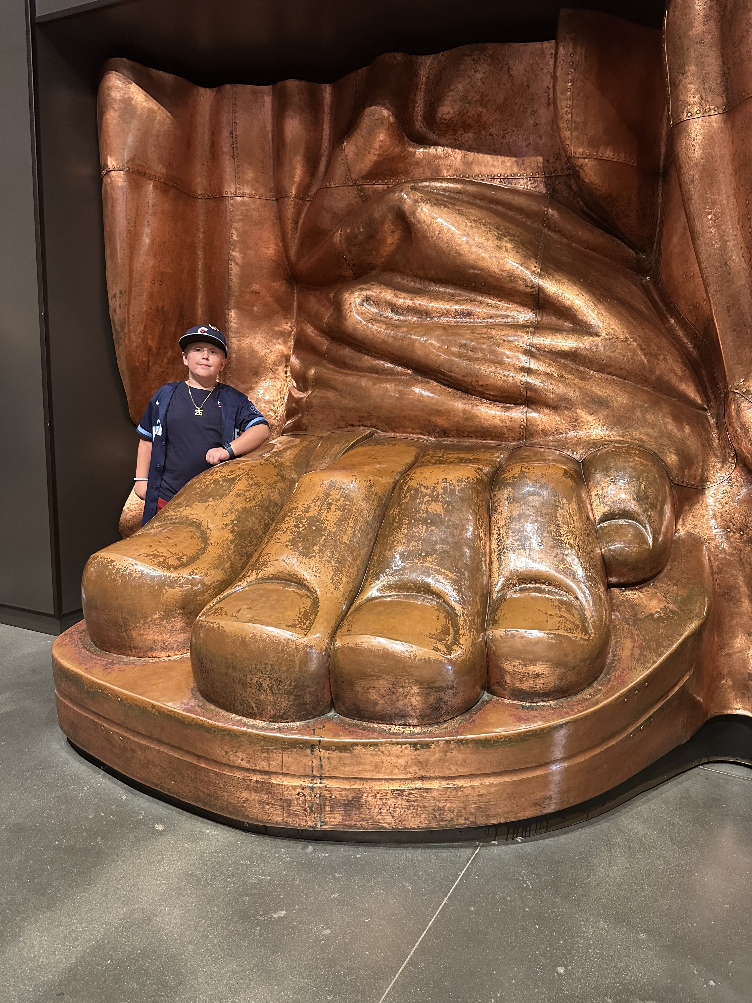 We asked Leigh what he wanted to see in New York and he jumped at the chance to visit the Statue of Liberty. So we took the subway downtown to Battery Park and went for a ferry ride to see Lady Liberty and Ellis Island. Sunday was a popular day for this tourist activity, and the lines were long, but the walk around the National Park was nice and breezy. Leigh’s a big fan of an audio tour, so this free one was great for him to learn more about the statue and what it represents. I had a flashback to when Eric and I first visited this monument about 20 years ago. Both times, we didn’t make it up to the top of the statue, or even into the giant pedestal the statue sits on. It’s still an impressive sight to take in. Plus, you can enjoy great views of the city from the bay.