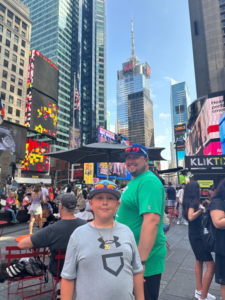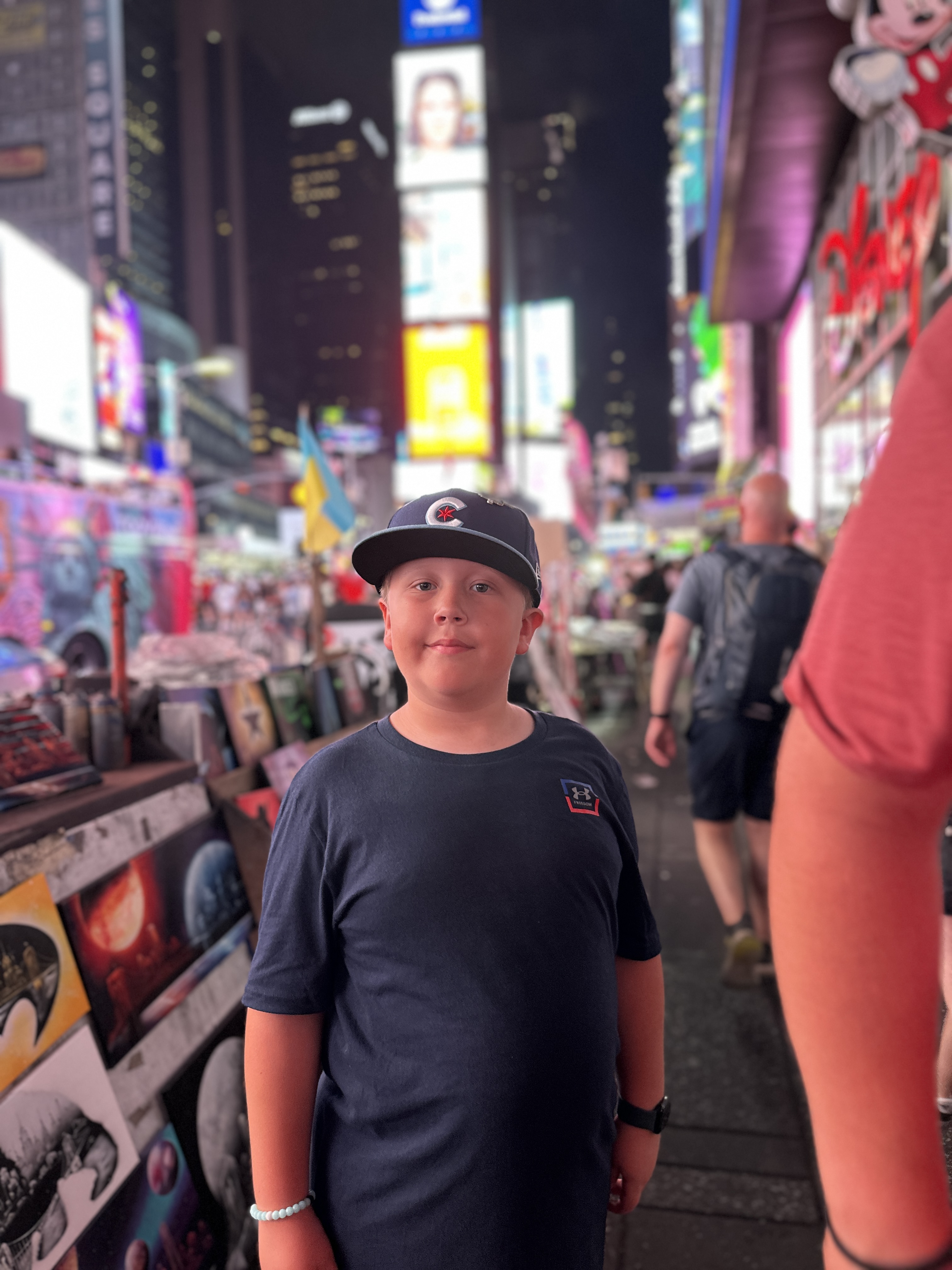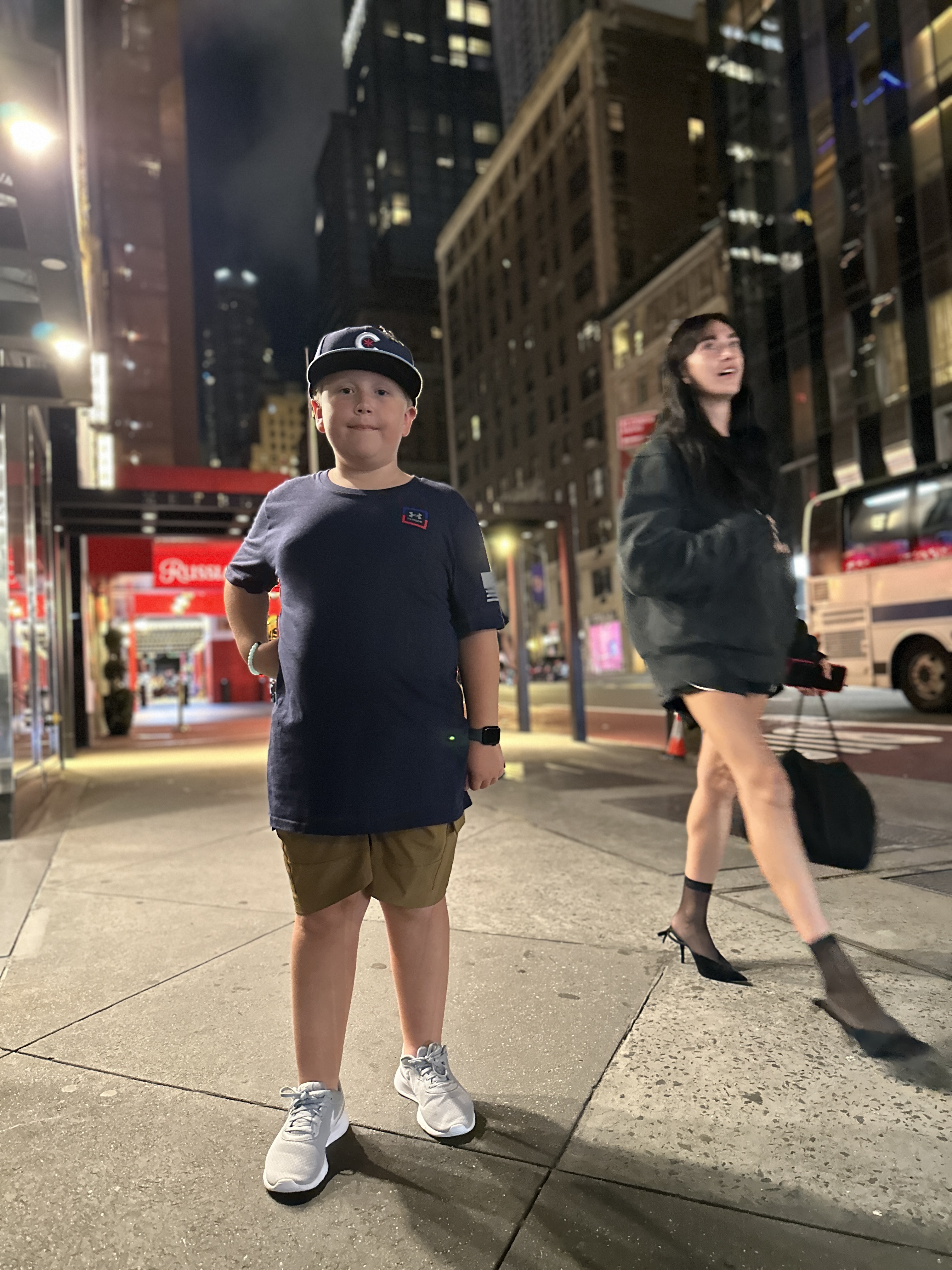 We flew outta town on a flight Friday night. A taxi quickly picked us up from La Guardia airport and dropped us off at our hotel in Midtown Manhattan. No surprise, but there was still a crazy amount of traffic on the roads late into the night. We took the late-night liveliness as a sign to walk down 7th Avenue to Rays Original Pizza and ate a few slices. Leigh laughed at the novelty of eating pizza slices the size of his head and the fact that the shop is open until 3am. This perfectly fit the bill for our first night. What we didn’t know was Leigh would soon become a Rays Pizza addict, visiting a total of three times during our weekend trip! When the kid knows he likes something, he can’t get enough of it.