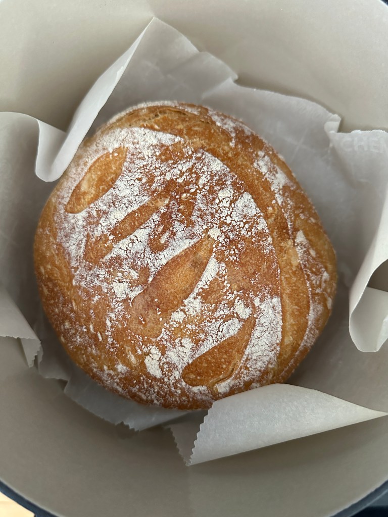 Happy butterflies filled my chest when a close colleague gifted me the most beautiful loaf of sourdough. It was a work of art, beautifully flecked with white flour dust in swirls. An actual artisan creation. Everyone loves to feel special, and being gifted homemade bread makes me feel all warm and fuzzy inside. I know sourdough bread making isn’t a quick bake. It takes hours for the sourdough starter to activate after being fed, and the iterative process of folding the dough as it rises requires consistent attention. And someone else did all this work for me. I still can remember how amazing it felt to cradle a loaf of still-warm, freshly baked bread in my hands – and how delicious it was to devour. And now I love to give that gift to friends.