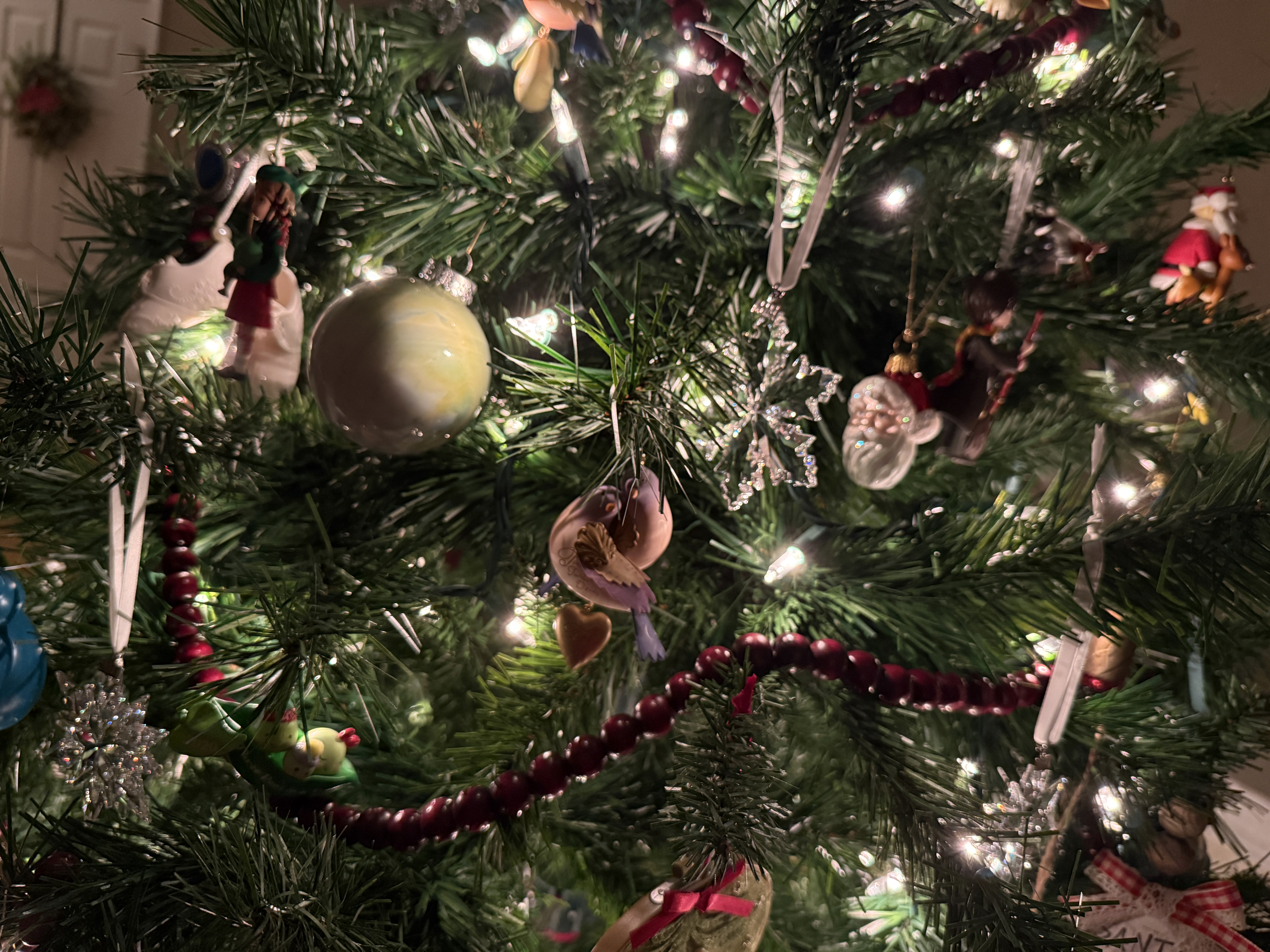 I’m writing this while basking in the warm glow of our Christmas tree, covered in ornaments we’ve spent a lifetime collecting. Every year, I think our tree is the most beautiful one I’ve ever seen, but I’m biased. It’s filled with old incandescent twinkle lights (I can’t bring myself to buy those obscenely bright LED lights). The branches of the tree are adorned with handmade ornaments made out of pictures and popsicle sticks Leigh has brought him from school, plushy animal creatures I bought to make the tree more kid-friendly in his youth, years of Swarovski crystal snowflakes glistening in the little lights, and nearly 100 Hallmark Keepsakes Eric and I have gifted to each other for the holidays. First apartment, first home, “we’re expecting,” baby’s first Christmas and so many more milestones, all marked with ornaments for the occasion. Red wood-bead garlands wrap around the tree, topped off with a gold star, cuddled up with a red velvet blanket laced with golden tassels at the base.